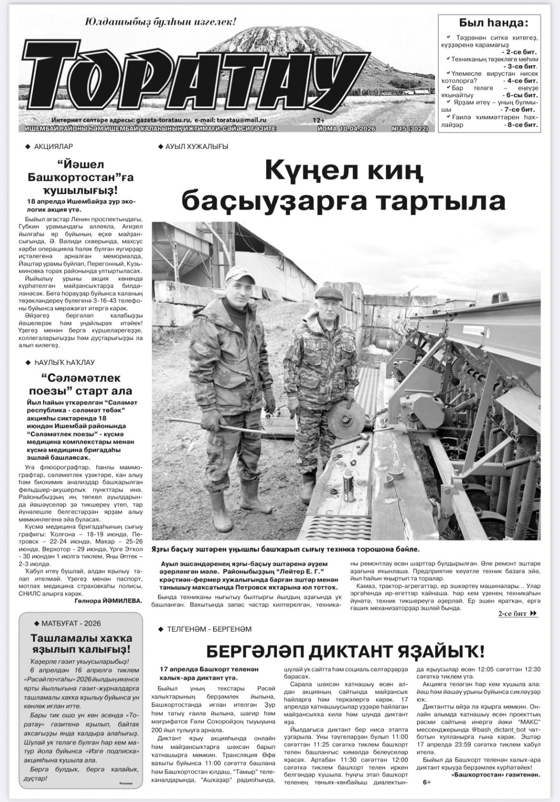 "Торатау" гәзитенең яңы һаны