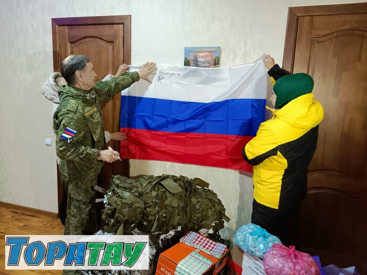 Рәшит Хәсәнов менән уға иртәгә юлға тигән көндө осраштыҡ. Йортона килеп инеү менән, бер Газель машинаһына тейәрлек гуманитар ылау күҙгә ташланды. Эй, халҡыбыҙҙың ихласлығы! Төрлө ауылдарҙан килтерелгән посылкаларҙа нимәләр генә юҡ. Бензин бысҡыһынан алып тыуған еребеҙҙә үҫкән хуш еҫле шифалы үлән сәйҙәренә тиклем әҙерләп һалған яҡташтар. Етенсе тиҫтәһен ҡыуған яугир һаман да етеҙ хәрәкәтле, типһә тимер өҙөрлөк ир әле. Былтыр июль айында Оборона министрлығы менән хәрби контракт төҙөп сафҡа баҫҡан ул. Байғужа мәҙәниәт йортонда художество етәксеһе булып эшләп йөрөгән уҙамандың ҡулындағы баянын Калашников автоматына алмаштырыуы, әлбиттә, тирә-йүндәгеләрҙе ғәжәпләндермәй ҡалмаған.